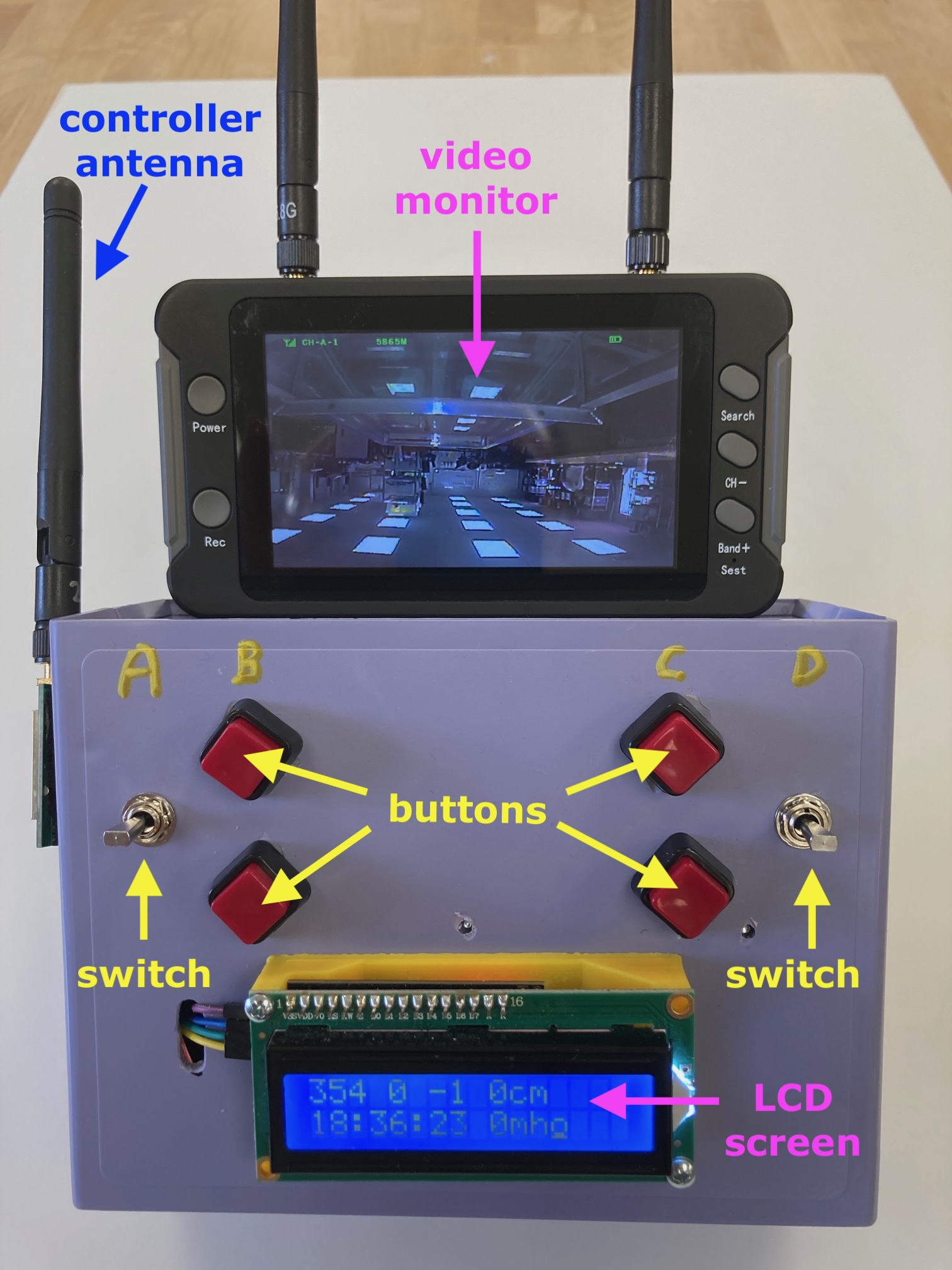 The handheld operator’s console also contains an Arduino which translates the information from the control switches you install on the console into a steam of data sent to the ROV via radio transmission. Your team will construct your own customized handheld controller console to operate your ROV.