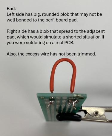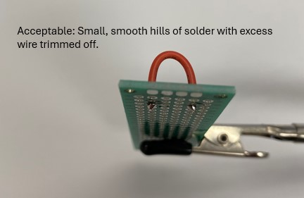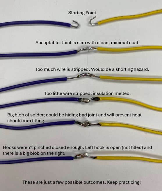Try to balance being goal-oriented here without stressing out about it. You do need to be able to produce quality solder joints for this class and probably other classes you will take at U-M, but you are not expected to do it perfectly on your first try. Soldering is not super hard, but it is a skill and takes some practice to get your hands steady and your technique right.